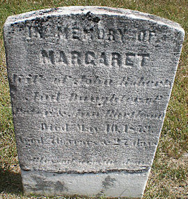 IN MEMORY OF MARGARET Wife of John Hubert and Daughter of Peter & Ann Bartleson Died May 10, 1873 Aged 76 years & 27 days.