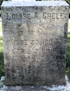 LOUISE A. CHELF. Wife of T. M. Lewis. JUNE 30, 1834 APRIL 3, 1919 Asleep in Jesus