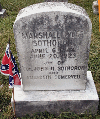 Robert Bowie Sothoron died on 8 March 1911. He was born 28 March 1847 in St. Mary's Co., MD to John Henry Sothoron & Elizabeth Magruder Somervell Sothoron. He entered VMI 24 Dec 1864 and left after 5 months. He worked as a gauger with the Internal Revenue Service for the State of Maryland. He never married & had no children. (Archivist, Virginia Medical Institute {Personal communication}