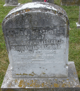 ROBERT BOWIE SOTHORON SON OF COL JOHN H. AND ELIZABETH SOMERVELL SOTHORON MARCH 27, 1846 MARCH 8, 1911 (Grave Marker*, All Faith Church, Huntersville, St. Mary's Co., MD)