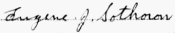 Eugene J. Sothoron of 5019 53rd Place, Rogers Height, Hyattsville P.O., Prince George's Co., MD registered for the draft at Local Board No. 14, Baltimore City, MD on 26 April 1942. He was 49 years old, born 30 Dec 1891 in Washington, DC; telephone no. Warfield 3985. Person who would always know his address was Mrs. Minnie R. Sothoron of same address. Employed by U.S. Government at Navy Yard, Washington, DC. Described as White, 5' 10 3/4" tall, 158 lbs., Blue eyes, Brown hair, Light complexion. Serial No. u2259. (World War II Draft Registration Card) Signature on card: