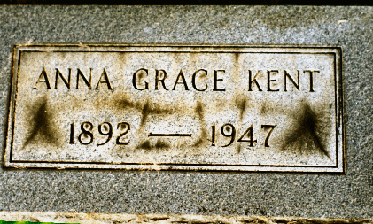 Anna Grace Kent was born in Spotsylvania Co. on 5/21/1892. She had lived at 321 Bath Street. She died on 2/25/1947 and was buried at Mountain View Cemetery, Clifton Forge, VA, at the top of a hill near the western end of the cemetery. (Burial Record, Nicely Funeral Home, Clifton Forge)