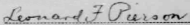 Leonard Forestier Pierson of 1210 Charles St., Fredericksburg, Spotsylvania Co., Virginia, registered for the draft at Local Board, Fredericksburg, VA on 27 April 1942. He was 63 years old, born 12 July 1878 in Caroline Co., Virginia; telephone no. 878W. Person always knowing his address was John F. Scott of same address. Unemployed. Described as White, 6' tall, 172 pounds, Brown eyes, Gray hair, Light complexion. Serial No. u216. (World War II Draft Registration Card) Signature on card: