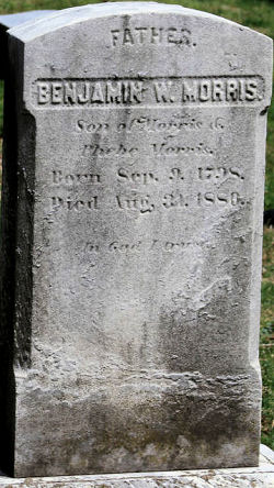 FATHER BENJAMIN W. MORRIS Son of Morris & Phebe Morris Born Sept. 9, 1798. Died Aug. 30, 1880.