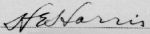 Herman Edwin Harris of Chancellor, RFD 1, Spotsylvania Co., VA registered for the draft at Local Board 1, Spotsylvania, VA on 24 April 1942. He was 56 years old, born 7 Jan 1885 at Spotsylvania, VA. Person who will know his whereabouts was Fraces Harris of same address. Employed by self at Chancellor, VA. Described as white, brown eyes, gray hair, 5' 10" tall, 206 pounds, ruddy complexion. Serial No. 751. (Ancestry.com* - image of World War II Draft Registration Card) Signature on card: