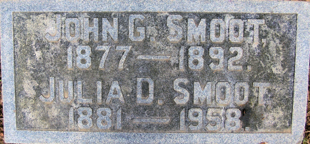 JOHN G. SMOOT 1877 - 1892 JULIA D. SMOOT 1881 - 1958 (Grave Marker, Lot 129, Oak Hill Cemetery, Washington, DC)