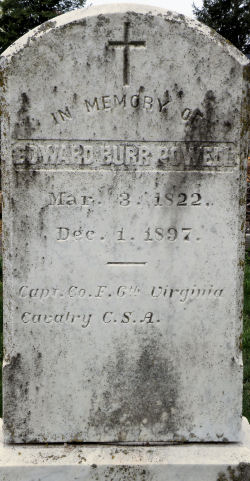 IN MEMORY OF EDWARD BURR POWELL Mar. 3, 1822. Dec. 1, 1897. Capt. Co. F. 6th Virginia Calvary C.S.A.
