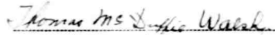 1920 Federal Census (1920.01.01, Recorded 1920.01.29) 531 Fifth St., Crossett, Ashley Co., AR - ED 7, Sh 13(31)A, Ln 45, 246/247 - Walsh, Thomas M. Head, 23 year old married white male, renting his home. Can read & write, speaks English. He & father born in Arkansas, mother in N. Carolina. Occupation Store Clerk, drawing wages. -----, Kathlene. Wife, 21 year old married white female. Can read & write, speaks English. She & parents born in Arkansas. Occupation none. -----, Thomas M. Son, 1 10/12 year old white male. He & parents born in Arkansas. - Harris, Mary. Cousin, 18 year old single white female. Can read & write, speaks English, attended school since Sept. She & mother born in Arkansas, father in USA. Occupation none. 1930 Federal Census (1930.04.15, Recorded 1930.04.15) 558 Fifth St.West, Crossett, Ashley Co., AR - ED 9, Sh 23B, Ln 58, 442/536 - Walsh, Thomas M. Head, 35 year old white male, in this his first marriage since 22. Can read & write, speaks English. He & father born in Arkansas, mother in South Carolina. Occupation Electrician at Power Plant, drawing wages. Veteran of WW. -----, Kathleen. Wife, 31 year old white female, in this her first marriage since 18. Can read & write, speaks English. She & parents born in Arkansas. Occupation none. -----, Thomas M., Jr. Son, 12 year old single white male. Can read & write, speaks English, attended school since Sept. He & parents born in Arkansas. -----, Ulener(?) J. Son, 9 year old white male. Attended school since Sept. He & parents born in Arkansas. -----, Catherine. Daughter, 5 year old white female. She & parents born in Arkansas. Thomas Walsh, SSN 430-01-9005 Born 2 Mar 1895 Issued AR (before 1951) Died Dec 1962 (SSDI*)