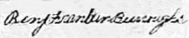 Benjamin Franklin Burroughs of Croome, Pr. Geo's Co., Md. registered for the draft at Upper Marlboro, MD on 12 Sept 1918. He was 19 years old, born 14 Jan 1898, White, Native born. Occupation Farming at home address. Nearest relative was Reginald Burroughs of same address. Described as tall, medium build, gray eyes, brown hair, no impairments. Serial No. 1154, Order No. 2683. (Ancestry.com* - image of World War I Draft Registration Card) Signature on card: