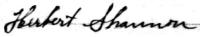 Herbert Shannon of Farview (sic), Brown Co., Kansas registered for the draft at Hiawatha, Kansas on 12 Sept 1918. He was 39 years old, White, born 24 Feb 1879 in USA. Occupation Farming at Fairview (sic), Brown Co., Kan. Nearest relative was Mrs. Bertha S. Shannon of same address. Described as of medium height & build, grey eyes, dk. brown hair, no impairments. Serial No. 5231, Order No. 2261. (Ancestry.com* - image of World War I Draft Registration Card) Signature on card:
