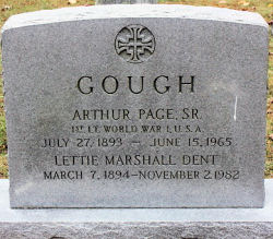 G O U G H ARTHUR PAGE, SR. 1st lt WORLD WAR I, U.S.A. JULY 27, 1893 - JUNE 15, 1965 LETTIE MARSHALL DENT MARCH 7, 1894 - NOVEMBER 2, 1982