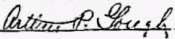 Arthur P. Gough, 23 years old born 27 July '93 at Wicomico, MD, same home address, registered for the draft at Pct. 8, Ward 12, Baltimore, MD (date not noted). Occupation Student at Md. Army, Ft. Myer. Married, White. Had 3 years of military experience at Charlotte Hall Military Academy. Described as short, medium build, Gray eyes, brown hair, not bald, no impairments. Form 1363, Card 220. (Ancestry.com* - image of World War I Draft Registration Card) Signature on card: