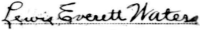 Lewis Everett Waters of Caney, Kan. registered for the draft at Pct 1, Caney, KS on 5 June 1917--also bears the notation "Recruiting Navy Station, St. Louis, Mo.". He was 28 years old, sincle, born 17 March 1889 in Welcome, MO. Occupation BookKeeper & Time Keep. at Junk Smelter in Caney, Kansas. Described as 4' 8" tall, medium build, blue eyes, light hair, not bald, no impairments. Form 2063, Card 92. (Ancestry.com* - image of World War I Draft Registration Card) Signature on card: