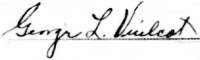 George L. Vuilcot of Linn, MO registered for the draft on 5 June 1918 (Notation on page: "Docket Page 48") He was 21 years old, White, born 14 March 1897 at Welcome, MO. Father's birthplace Welcome, MO. Employed by V.A. Vuilcot of same address. Nearest relative was V.A. Vuilcot, father, of same address. Described as short, slender, gray eyes, light hair, no impairments. Serial No. 16, Registration No. 16. (Ancestry.com* - image of World War I Draft Registration Card) Signature on card: