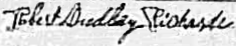 Robert Dudley Richards of 1346 James St., Balto., MD registered for the draft at Local Board 21, Baltimore, MD on 12 Sept 1918. He was 37 years old, White, born 27 Aug 1881 in USA. Occupation Carpenter, working for Raymond ____, ___ Md. Nearest relative was Annie Richards of same address. Described as tall, slender, gray eyes, brown hair, no impairments. Serial No. 1349, Order No. A-1038. (Ancestry.com* - image of World War I Draft Registration Card) Signature on card: