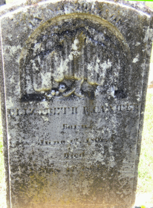 Elizabeth R. Canter, b. 13 Jun 1801, d. 13 May 1864, buried at All Faith Episcopal Church (Huntersville, MD). (Tice* :97)