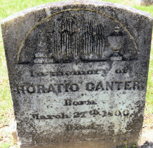 Horatio Canter, b. 27 Mar 1800, d. 21 Mar 1858, buried at All Faith Episcopal Church (Huntersville, MD). (Tice* :98)