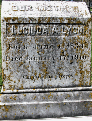 OUR MOTHER LUCINDA A. LYON, Born July 1, 1834. Died January 17, 1916 "Christ is my hope."