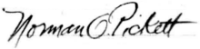 Norman O. Pickett of 1522 Erie Ave., Phila., Pa. registered for the draft at Pct 21, Philadelphia, PA on 5 June 1917. He was 27 years old, Caucasian, single, born 22 May 1890 in USA. Occupation Advertg.. with H.E. James Advertising Co., 101 W. 19th St., New York City. Described as 5' 8 1/2" tall, slender build, hazle (sic) eyes, light hair, not bald, no impairments. Form No. 2658, Card No. 57 (Ancestry.com* - image of World War I Draft Registration Card) Signature on card: