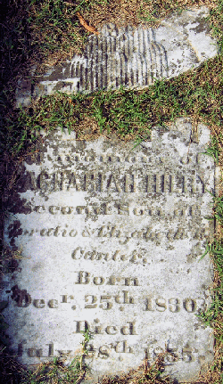 In memory of ZACHARIAH HENRY Second Son of Horation & Elizabeth M. Canter Born Decr. 25th 1830 Died July 28th 1855 (Grave Marker, All Faith Church, Huntersville, St. Mary's Co., MD)