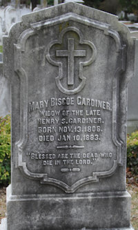 MARY BISCOE GARDINER WIDOW OF THE LATE HENRY S. GARDINER. BORN NOV. 13, 1806. DIED JAN 10, 1883. "BLESSED ARE THE DEAD WHO DIE IN THE LORD"