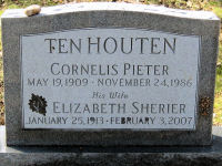 TENHOUTEN CORNELIS PIETER MAY 19, 1909 - NOVEMBER 24, 1986 His Wife ELIZABETH SHERIER JANUARY 25, 1913 - FEBRUARY 3, 2007