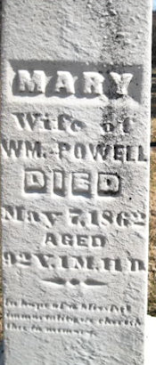 MARY Wife of WM. POWELL DIED May 7, 1862 AGED 92 Y. 1 M. 11 D.