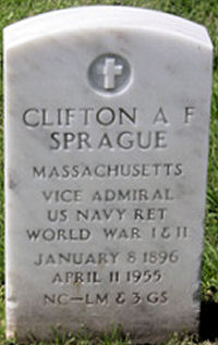 CLIFTON A F SPRAGUE MASSACHUSETTS VICE ADMIRAL US NAVE RET WORLD WAR I & II JANUARY 8 1896 APRIL 11 1955 NC-LM & 3 GS