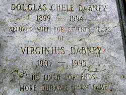 DOUGLAS CHELF DABNEY 1899 - 1994 BELOVED WIFE FOR SEVENTY YEARS OF VIRGINIUS DABNEY 1901 -- 1995 "HE LIVED FOR ENDS MORE DURABLE THAN FAME"
