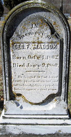 IN memory of GEO. F. MADDOX Born Octr. 1, 1802. Died Jany. 9, 1880.