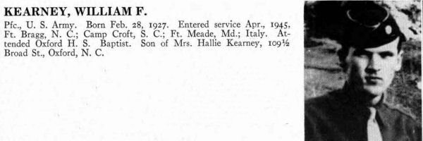 Kearney David L. [Male] b. 30 JUL 1920 Oxford, Granville Co., NC - d. 15 AUG 2000 UNC Hospital, Chapel Hill, Orange Co., NC