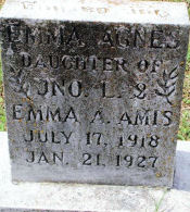 Amis Emma Agnes [Female] b. 17 JUL 1918 Tennessee - d. 21 JAN 1927 Maplewood Cemetery, Pulaski, Giles Co., TN