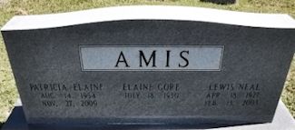 A M I S PATRICIA ELAINE . . ELAINE GORE . . LEWIS NEAL AUG. 4, 1954 . . . . . . JULY 18, 1930 . . . APR. 18, 1927 NOV. 27, 2009 . . . . . . . . . . . . . . . . . . . . . . FEB. 13, 2003