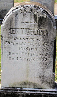 IN MEMORY OF IDA L. BODINE Daughter of Elisha W. & Elizabeth J. Bodine Born Oct. 16, 1856 Died Mar. 30, 1932