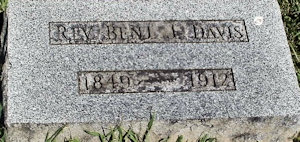 B.J. DAVIS Death Comes to Baptist Minister at Morganfield FORMERLY OF THIS COUNTY - The Rev. B. J. Davis, for many years pastor of the Clayvillage and Bagdad Baptist Churches in this county, died Tuesday night at his home in Morganfield, after a brief illness. No particulars of his death were contained in the message received by friends here. - Mr. Davis was a graduate of the Southern Theological Seminary and was widely known in this county. For a number of years he was pastor at Bagdad and Clayvillage, and was also in charge of the Little Mount Church. He served as Moderator of the Shelby County Baptist Association and was a preacher of ability and power. About three years ago he removed to Lexington and preached for several churches near the Fayette County capital. Nine months ago he accepted a call to the church at Morganfield, where he was meeting with marked success. - Mr. Davis is survived by his widow and several sons. He was fifty five (sic) years of age. - The body will be brought to his former home at Bagdad for burial. The funeral services will be conducted at the Baptist Church there tomorrow afternoon at 1:30 o'clock by Dr. Porter, of Lexington. (www.findagrave.com* - Shelby[KY] News, Reported 12 Dec 1912)