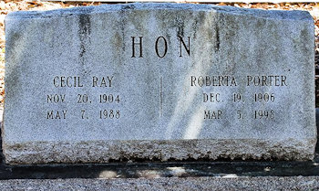 H O N CECIL RAY . . . .| . . ROBERTA PORTER NOV. 20, 1904 . | . . DEC. 19, 1906 MAY 7, 1988 . . .| . . MAR. 5, 1998