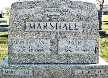 M A R S H A L L MARGARET ANN . . . . JOHN S. APR. 11, 1852 . . . . . . . . JAN. 1, 1850 AUG. 27, 1930 . . . . . . . . JAN 1, 1935