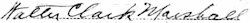 Walter Clark Marshall, 33 year old white Cement Finisher, of R#3, Fort Madison, Lee Co., IA, born on 25 Nov 1884, registered for the draft at Fort Madison, Lee Co., IA on 12 Sept 1918. His employer was Prairie Pipeline Co. of Wellsville, Montgomery Co., MO. Next of kin was Mrs. M.D. Marshall of R#3, Fort Madison, IA. Described as of medium height & build, brown eyes, black hair, no impairments. (Ancestry.com* - image of World War I Draft Registration Card - Serial #4175, Order # A1348) Signature on card: