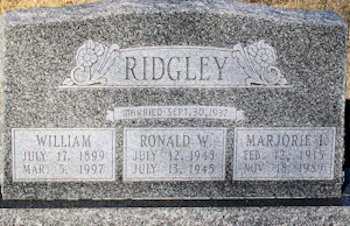 R I D G L E Y . . . . . . . . . . . . . MARRIED SEPT. 30, 1937 WILLIAM . . . . . . . . . RONALD W. . . . . . . MARJORIE I JULY 17, 1899 . . . JULY 12, 1945 . . . . FEB. 12, 1915 MAR. 5, 1997 . . . . JULY 13, 1945 . . . . NOV. 18, 1989