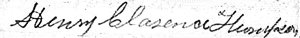 Henry Clarence Thompson of Wicomico, Charles Co., MD, 37 year old White citizen, born 6 Oct 1880, registered for the draft at Local Board (location undecipherable) on 12 Sept 1918. He was a self-employed Farmer at Wicomico, Charles Co., MD. Nearest relative was Kate E. Thompson. Described as of medium height & build, blond hair, brown eyes, no impairments. Serial No. 375, Order No. 723. (Ancestry.com* - image of World War I Draft Registration Card) Signature on card: