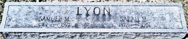L Y O N SAMUEL M. . . SARAH M. 1867 - 1921 . . . 1872 - 1951