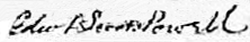Edward Burr Powell of Main St., Ellicott City, Md. registered for the draft at Ellicott City, Howard Co., MD on 12 Sept 1918. He was 36, born 29 Jan 1882, White, born in Maryland. Occupation Newspaper Editor of Ellicott City Times, Main St., Ellicott City, Md. Nearest relative was Wm S. Powell of same address. Described as medium height & build, Grey eyes, Dark hair, no impairments. Serial No. 356, Order No. 452A. (Ancestry.com* - image of World War I Draft Registration Card) Signature on card: