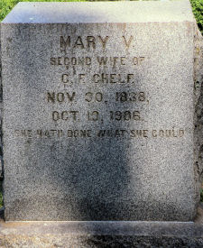 MARY V. SECOND WIFE OF C. F. CHELF NOV. 30, 1838 OCT 19, 1906 SHE HATH DONE WHAT SHE COULD