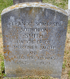 Eleanor Sothoron Smith born to Mortimer S. & Dorothy Smith on 11 August 1847. (Chronicles of St. Mary's 3:#10 - Vestry Minutes, All Saints PE Church, King & Queen Parish; back of Vol. 2)