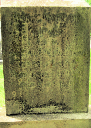 George Mackubin Thomas, 13 Oct 1854 - 8 May 1929, Son of Clare & Dr. James Thomas of De La Brooke. Buried at All Faith Episcopal, St. Mary's Co., MD. (Tice* :540)