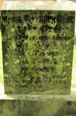 Minnie Fitzhugh Bond Thomas, 29 Feb 1856 - 1 Mar 1928, Wife of George Mackubin Thomas of De La Brooke. Buried at All Faith Episcopal, St. Mary's Co., MD. (Tice* :543)