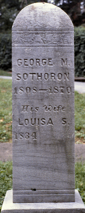 GEORGE M. SOTHORON 1808 - 1870 his wife LOUISA S. 1834 - (blank) (Grave Marker*, Oak Hill Cemetery, Washington, DC)
