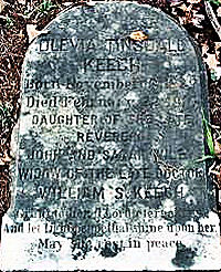 OLEVIA TINSDALE KEECH Born November 19, 1839 Died February 22, 1916 DAUGHTER OF THE LATE REVEREND JOHN AND SARAH WILEY WIDOW OF THE LATE DOCTOR WILLIAM S. KEECH (First line of scripture illegible) And let Light Eternal shine upon her. May she rest in peace.