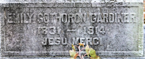 Emily Sothoron Gardiner, dau Henry Sothoron Gardiner & Mary Biscoe Wilson, b. 1831, d. 16 Apr 1914, Virginia; buried Elmwood Cemetery, Norfolk, VA. (Croll* - Cynthia Conroy, Diary of Mary Elizabeth Shelton Gardiner)